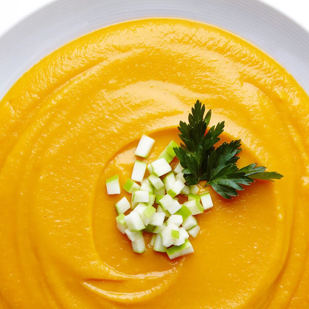 Did you know that there’s a relationship status button on Facebook declaring, “It’s complicated”? Well, Mr. Zuckerberg, where’s the “It’s simple” one? That’s the status we give this unbelievably easy and delicious Carrot Ginger Soup. Creamy yet creamless, this healthy soup not only benefits from the sweetness of roasted carrots, but also the hint of heat from freshly grated ginger. Sprinkled with a crunchy roasted almond topping, this superbly warming soup gets a “Like” (only because there’s no “Love” button) from one and all.